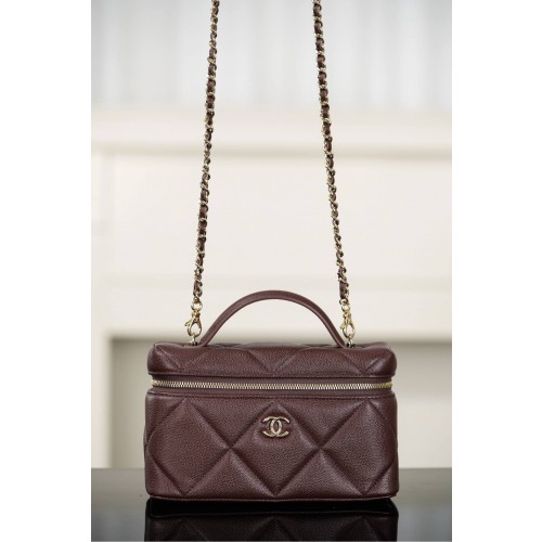 [팬더] 샤넬 25 직사각 베니티 케이스 캐비어 골드 다크브라운